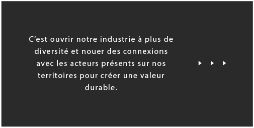 C’est maintenant le moment de faire connaître notre raison d’être. Elle nous invite à changer de perspective sur les enjeux auxquels est confrontée notre industrie. C’est ce que nous exprimons à travers l’expression “Imagine Bigger”. Nous avons également à cœur d’incarner ce qui forge notre fierté d’appartenance et de décupler notre impact auprès de nos communautés. C’est ce que nous avons appelé “Imagine Blue”.